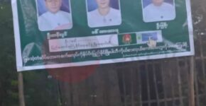 နတ်တလင်းမြို့က မီးရှို့ခံရတဲ့ ကြံ့ခိုင်ရေးမဲဆွယ် ဆိုင်းဘုတ်တွေ အသစ်ပြန်စိုက်