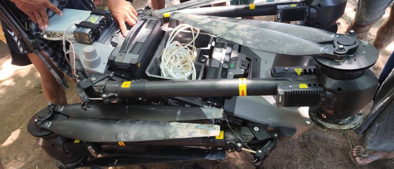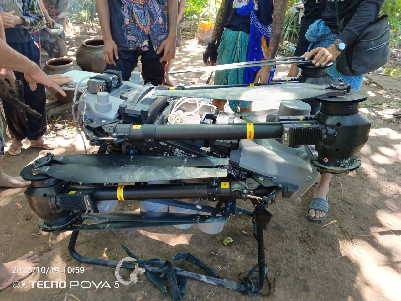 ယနေ့ အောက်တိုဘာ ၁၉ ရက်နေ့ နံနက် ၁၀ နာရီခွဲခန့်က စက်ချို့ယွင်းပြီး ပြုတ်ကျလာတဲ့ ဒရုန်းကို သရက်ချောင်းရွာအနောက်ဘက်မှာ သွားရောက် သိမ်းဆည်းရယူခဲ့တာလို့ သိရပါတယ်။
