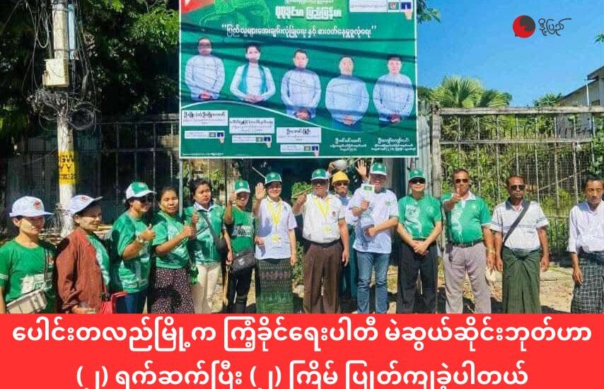 ပေါင်းတလည်က ကြံ့ခိုင်ရေးမဲဆွယ်ဆိုင်းဘုတ် (၂) ကြိမ်လဲကျလို့ စနောက်မိသူကို ပျူစောထီးတွေက ရဲခေါ် ဖမ်းခိုင်း