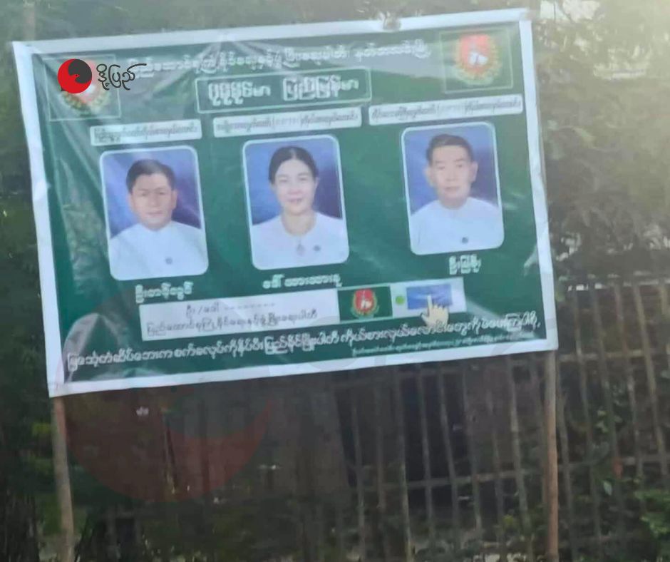 ပုံစာ-နတ်တလင်းမြို့ ကျေးရွာတခုက ကြံ့ခိုင်ရေးမဲဆွယ်ဆိုင်းဘုတ်နဲ့ မီးရှို့ခံလိုက်ရတဲ့ ဆိုင်းဘုတ်
